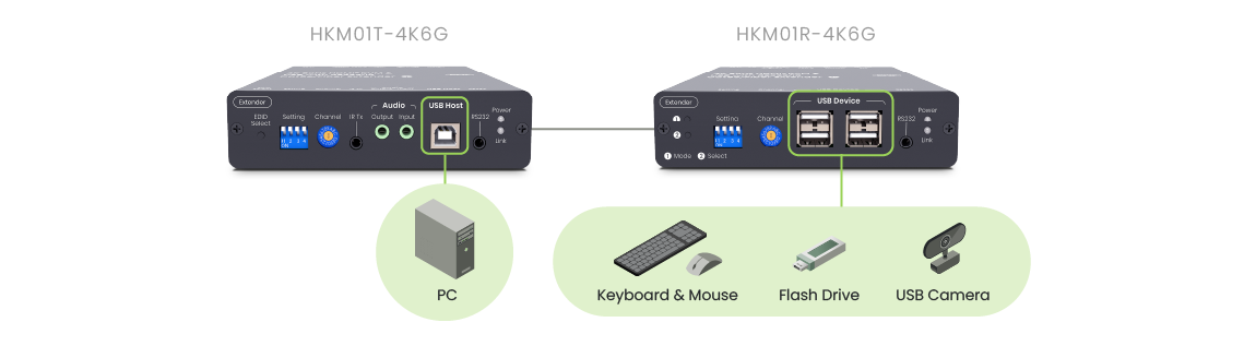 Let your setup adapt to your audio needs seamlessly. Depending on the connection of the 3.5mm, HKM01-4K6G automatically configures audio inputs and outputs. It even allows remote microphone audio to be transmitted back to the computer. Setup instructions are available in the user manual for your convenience.