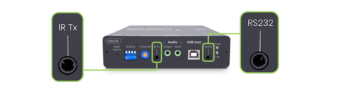 HKM01-4K6G 的傳輸端、接收端可串接網路交換器,將兩端設備的旋轉開關設定為相同的數字後,便可以達到多對多控制的功能。
