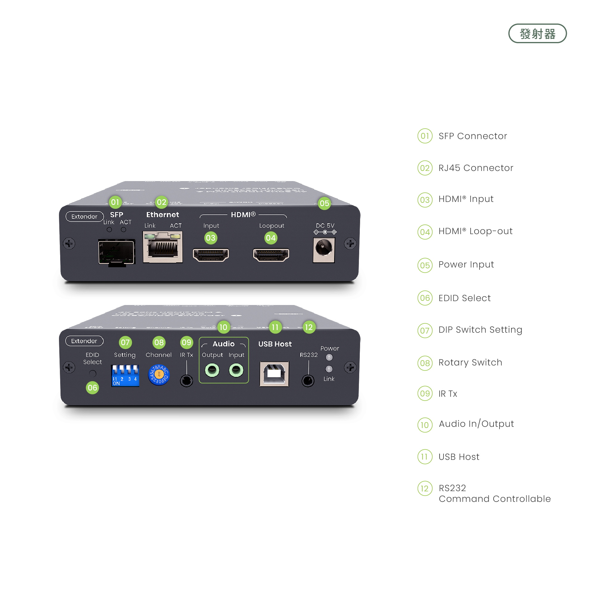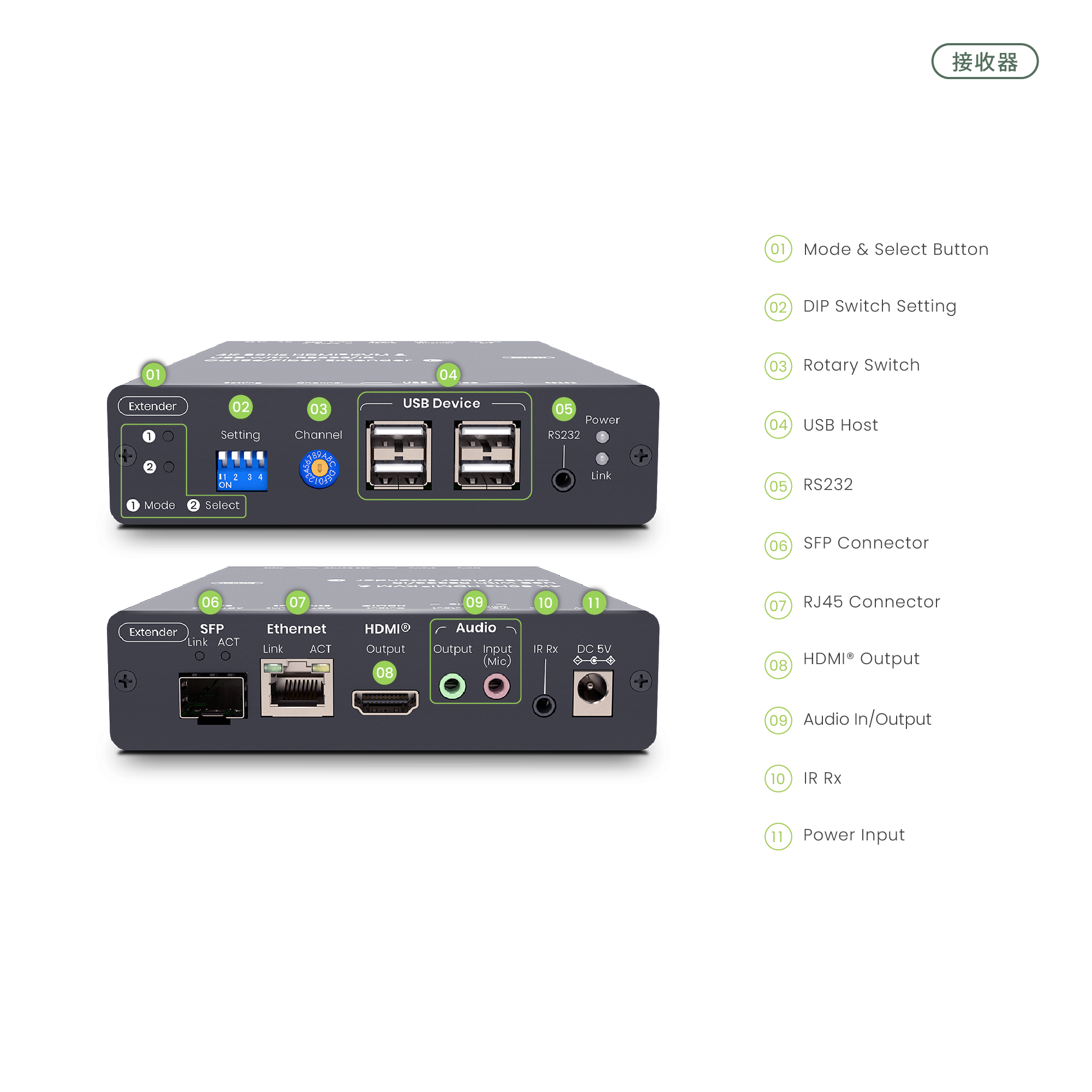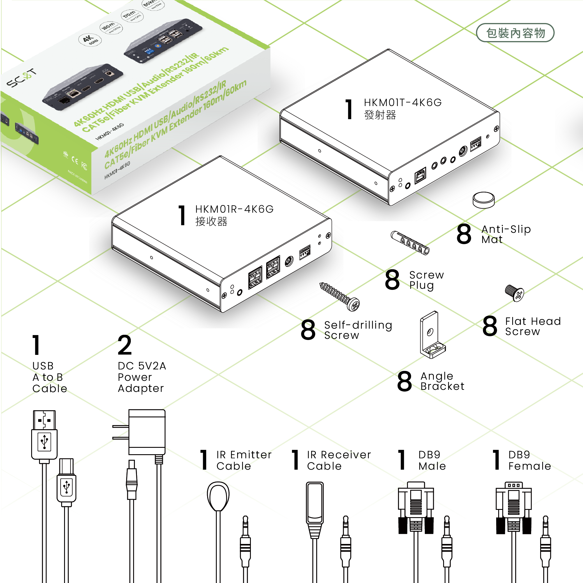 HKM01-4K6G 是一款 4K60Hz HDMI KVM 延長器,支援網路線或光纖模組兩種傳輸方式,可傳輸 USB、雙向聲訊、RS232、IR 訊號,讓您在管理設備上更加方便,同時支援 EDID 管理功能,讓您更快速設定顯示器。